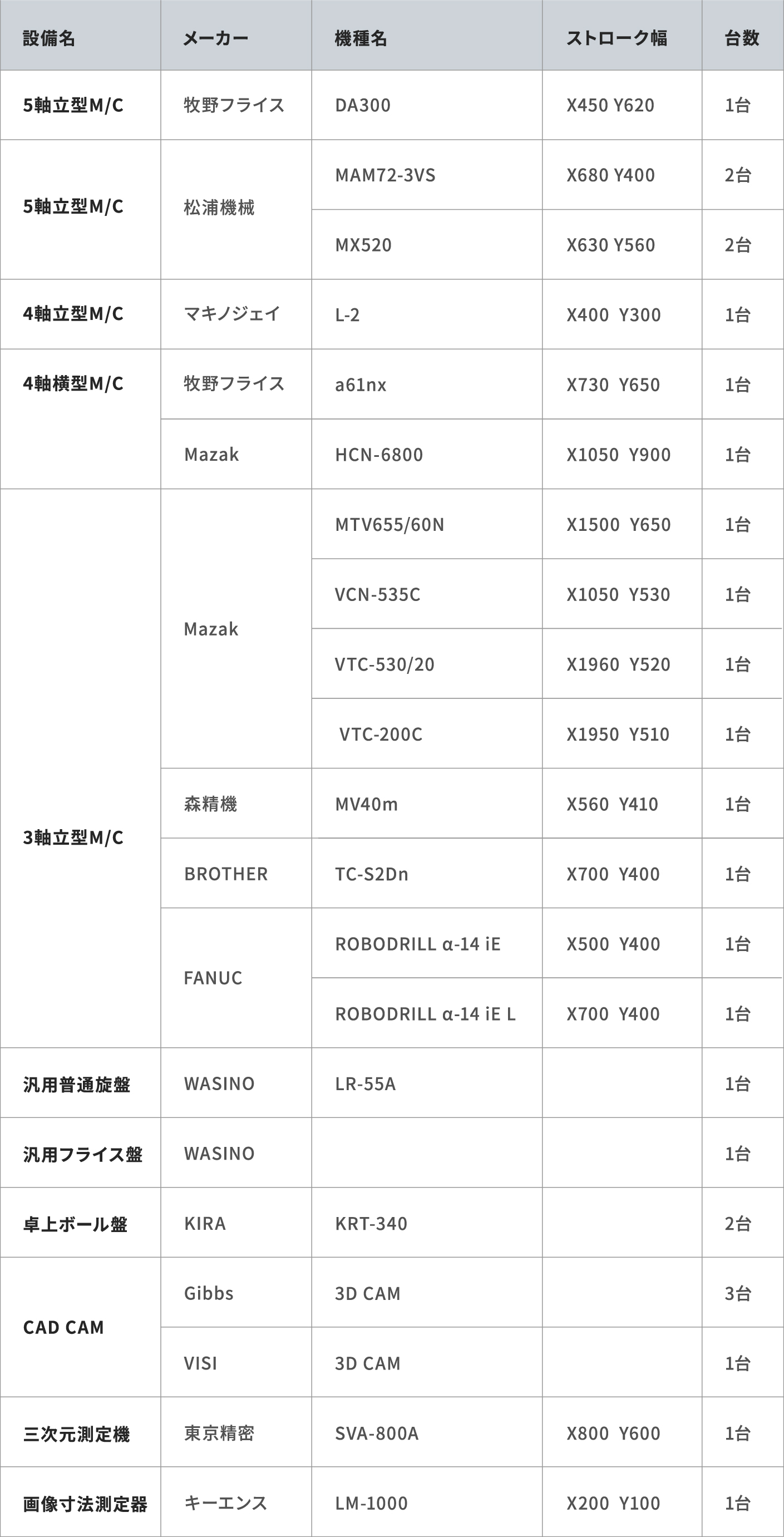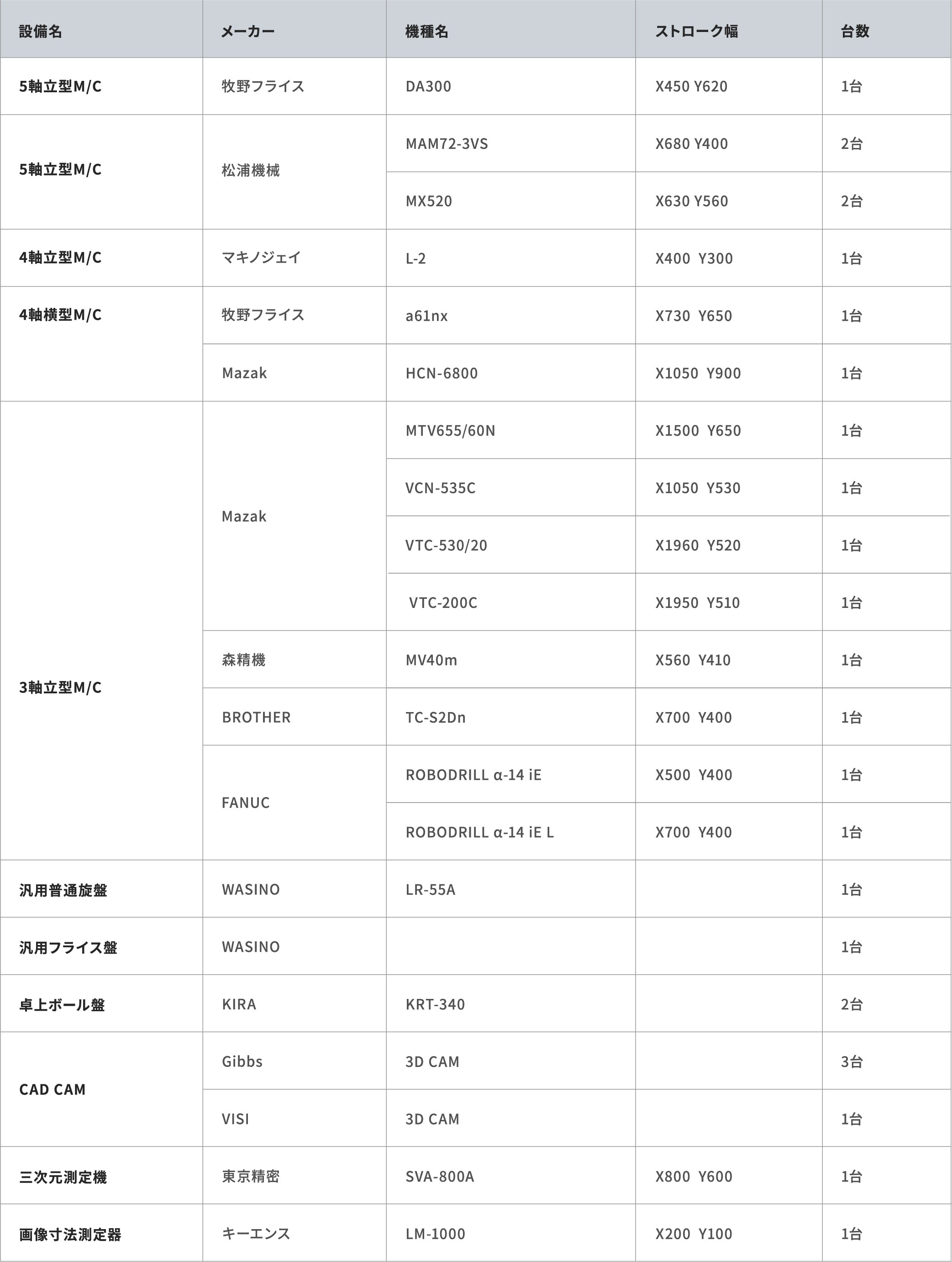 主力である5軸マシニングセンタをはじめ、
